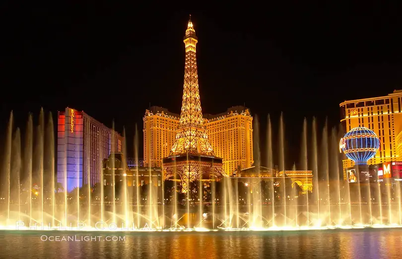 Фонтаны Bellagio это одно из самых известных зрелищ США. Вода музыка и свет синхронизируются в идеальной хореографии каждые тридцать минут вечером.