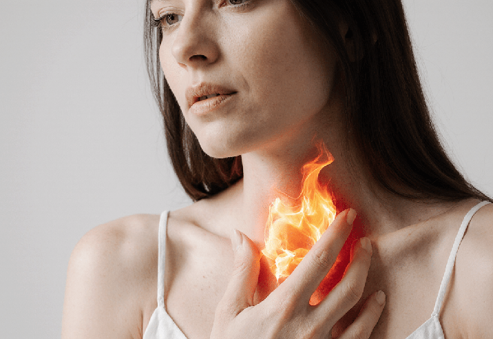Жжение за грудиной, которое появляется после еды или в положении лёжа — классический симптом.